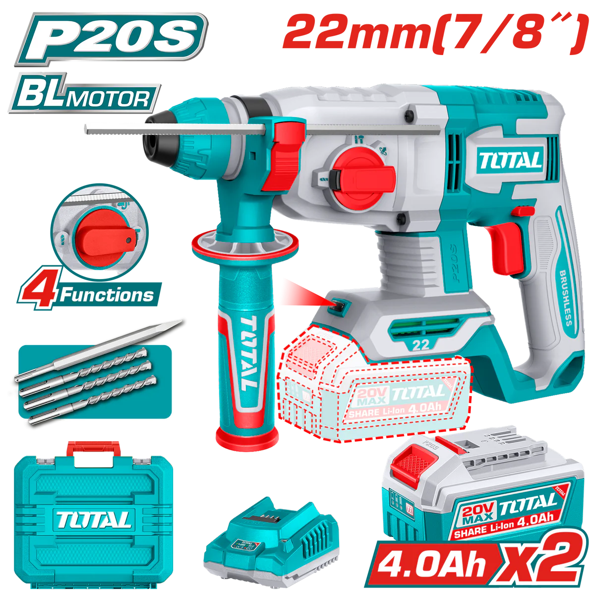 Total Cordless rotary hammer 22mm 20v